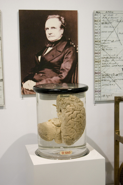 When he died, Charles Babbage (1791-1871), English polymath, mathematician, philosopher, engineer, and the “father of the computer,” donated one half of his brain to the Royal College of Surgeons, where it still sits in display today in the Hunterian Museum. The other half resides in the computing galleries of the Science Museum in London.